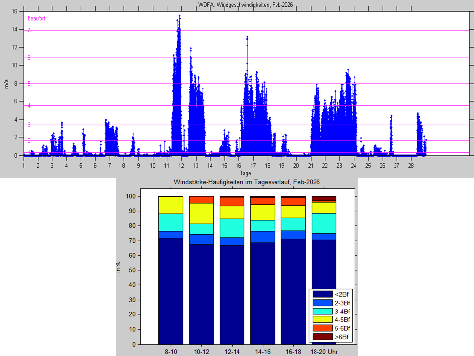 Windstatistik von unserem Windmesser am Klubhaus am Feringasee in Unterföhring.